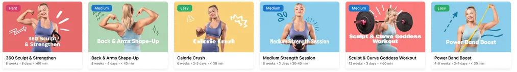 Empower yourself with our strength training tailored to inspire and uplift women at every fitness level. Find joy and build resilience, in the gym or at home, equipped or not. Our workouts are crafted to enhance your power and confidence, supporting you every step of the way.
